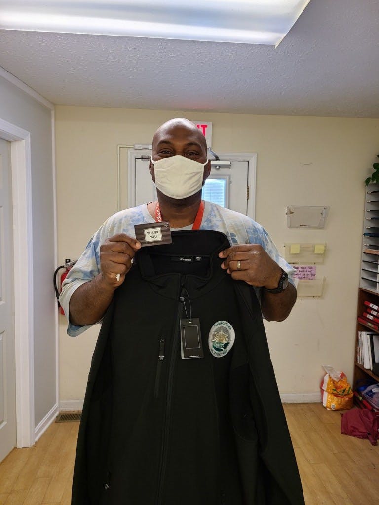 The jackets have the organization, New River Valley Community Services logo, along with the slogan, “Transportation, We Get You There”. This motto is very fitting as the staff was able to maintain service throughout and never had to cut or cancel any service during Covid.